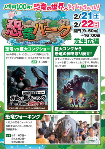 2/21(土)・2/22(日)、ボートレース尼崎の芝生広場が“恐竜の世界”にタイムトラベル!