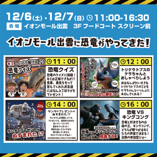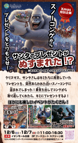 #スノーコング #サンタのプレゼント #クリスマスイベント #イオンモール出雲 #恐竜クイズ #恐竜ショー #家族でおでかけ #せかいの恐竜ワンダーランド #無料イベント