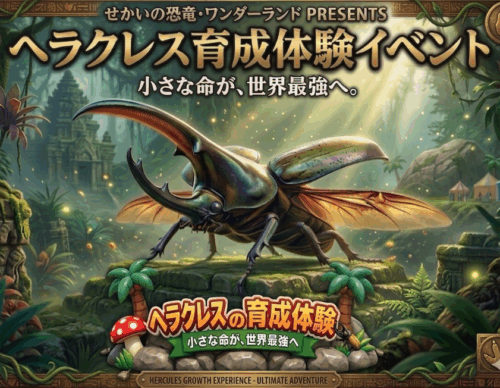 「ヘラクレス育成イベント」は、発掘のドキドキと、育てるワクワクをひとつにした、非常に印象深い体験型イベントです。