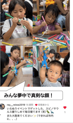 恐竜ワークショップは、「楽しみながら学べる体験(エデュテインメント)」をコンセプトにした参加型イベントです。