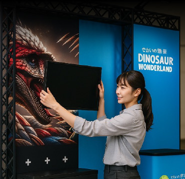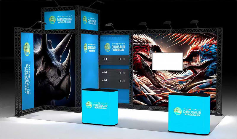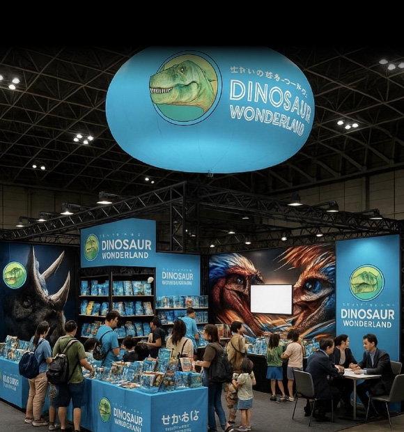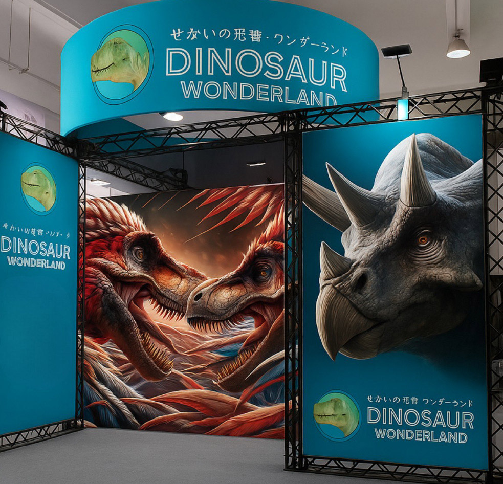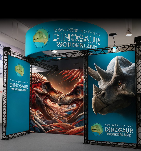 「せかいの恐竜・ワンダーランド」は、恐竜イベントの企画・運営を全国で年間400件以上行い、20年以上の展示什器製造・イベント施工実績を持つディスプレイメーカーです。